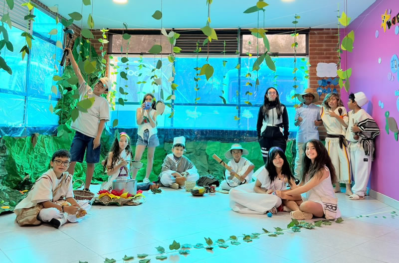 Nuestros proyectos artísticos y culturales son el alma de la expresión en el colegio, donde el talento de cada estudiante encuentra un escenario para brillar. A través del teatro y la danza, los alumnos exploran el lenguaje del cuerpo y la voz, desarrollando una confianza y empatía que solo las artes escénicas pueden brindar al ponerse en los zapatos de otros. Por su parte, las artes plásticas permiten capturar la esencia de nuestra sede campestre en lienzos y esculturas, transformando la observación de la naturaleza en piezas únicas que reflejan la visión personal de nuestros jóvenes artistas.